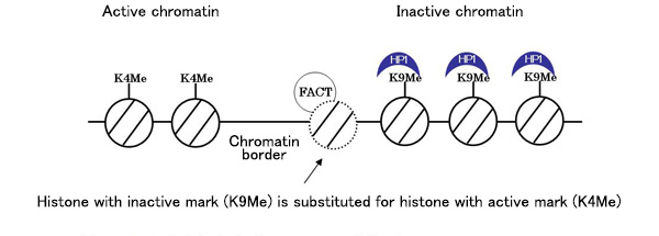 There is a border between active and inactive chromatin. We conducted our research while focusing on this chromatin border. Our research did not progress smoothly because the chromatin structure was quite complex and there was not sufficient information about it at first. We repeated various experiments day after day, and ten years later we discovered the protein FACT near the chromatin border. This discovery suddenly cleared up various mysteries, leading us to elucidate the mechanism in question.