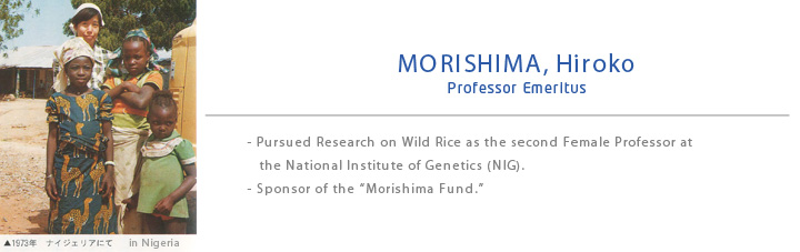 After graduating from the University of Tokyo, Dr. Morishima devoted over 40 years of research on rice genetics at the National Institute of Genetics (NIG). Following her passing at the age of 76, the “Morishima Award” was established to recognize outstanding graduates from NIG, using the donation from her family (the “Morishima Fund”). Here we follow the footsteps of Dr. Morishima through her writings and documents.