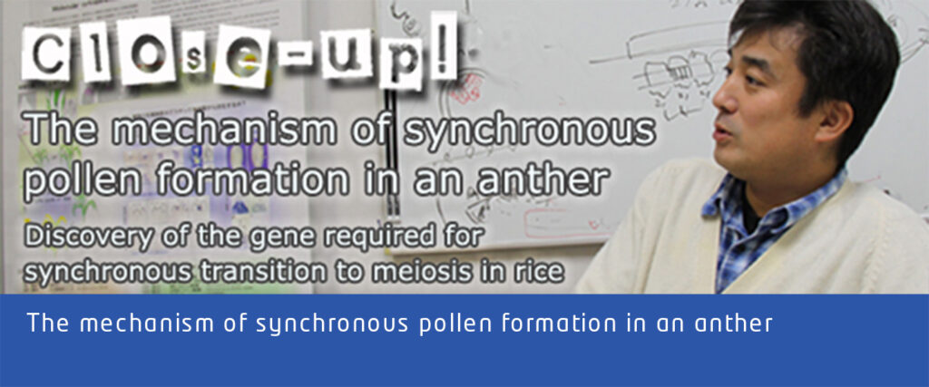 For an angiosperm to leave seeds, it needs a mechanism that produces male and female gametophytes (pollen and embryo sac) simultaneously at an appropriate season and realizes synchronous fertilization. Plants prepare many genetic systems for synchronous fertilization. Sensoring the change in environmental conditions such as day length and temperatures and initiating the transition to reproductive phase is one of important phenomena in the early part of this process. The establishment of synchrony of male meiosis, which is the main theme of my paper published in 2011, is known as another important system. Primordial germ cells, which are generated in large numbers in the anther primordium, repeat asynchronous premeiotic mitosis initially to increase the number of cells. Later, at a certain moment, germ cells in anther enter into meiosis at the same time. Pistil is also believed to have a mechanism that synchronizes meiosis with the male side. However, nothing was known about the molecular mechanism of a plant that supports transition to meiosis.