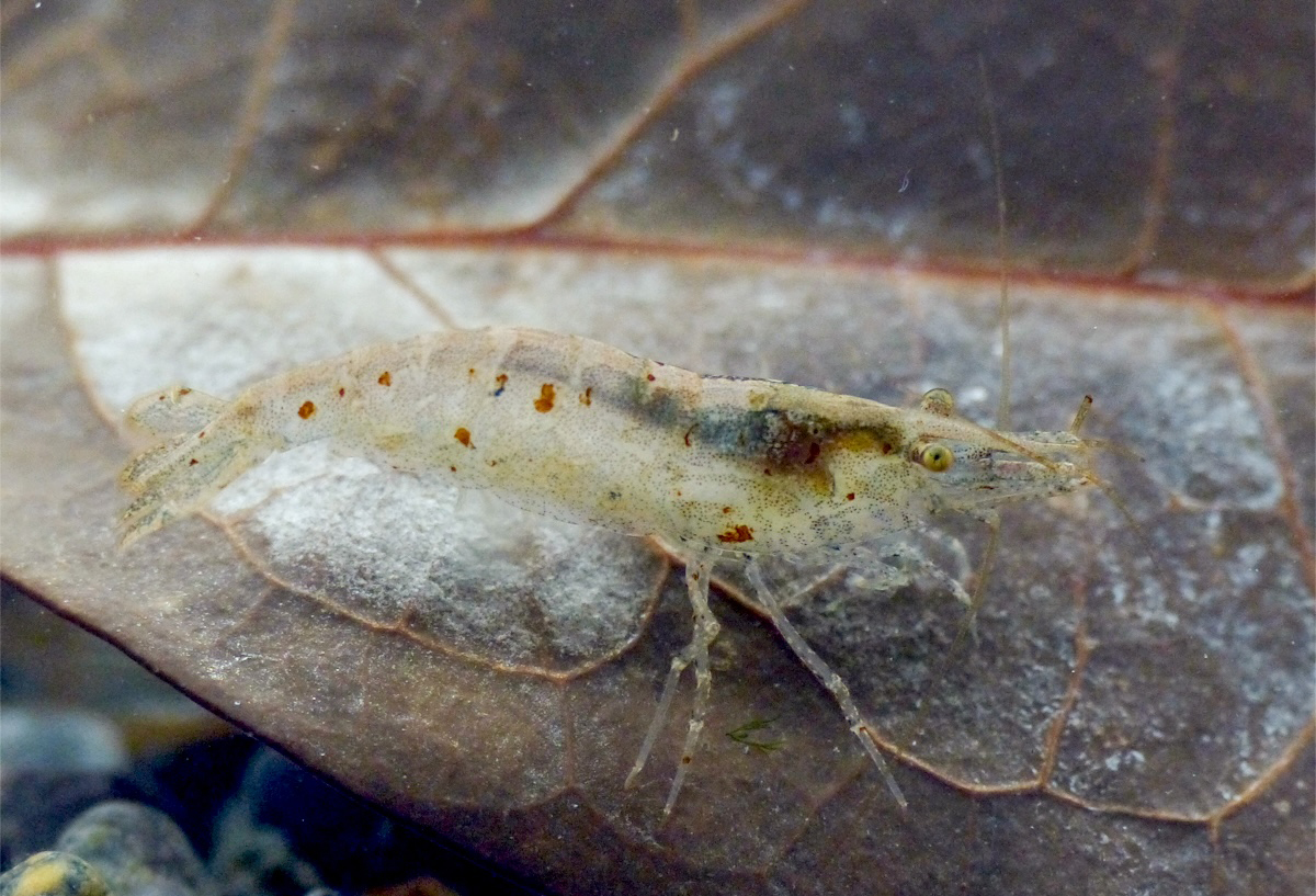 図:宇久島から得られたミナミヌマエビ。固有のミトコンドリアDNAハプロタイプを持つことから、在来集団であると結論付けられた。(中島淳 撮影)