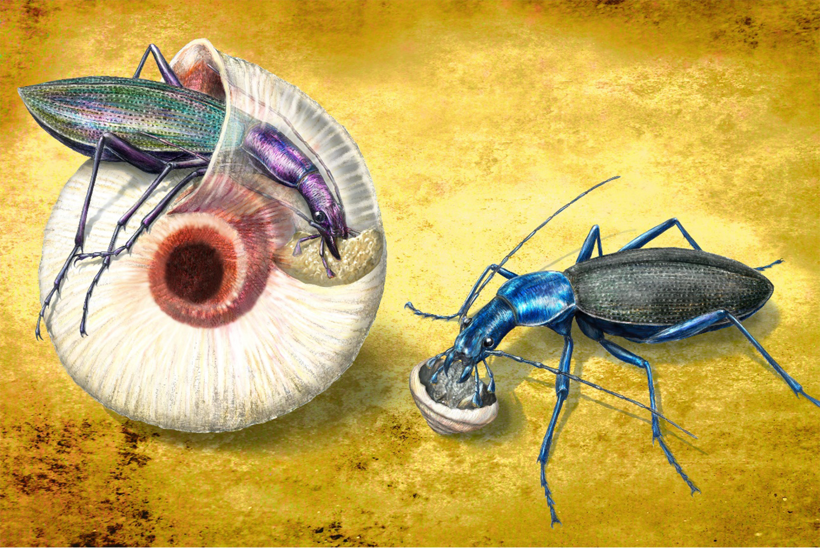 東邦大学の小沼順二准教授と京都大学の曽田貞滋教授(現・名誉教授)を中心とする研究グループは、ヒトの頭の形に関わる遺伝子と同じ遺伝子が、カタツムリ食のオサムシの1種、マイマイカブリの頭の形を決めていることを発見しました。この遺伝子の変異によって、マイマイカブリは、地域によって頭が細長い形と太短い形に分かれ、それぞれ違った方法でカタツムリを食べるように適応しています。この遺伝子は多くの動物が保有している保存性の高い遺伝子ですが、甲虫の形態の多様性に重要な役割を果たしている可能性があります。この研究成果は、雑誌「Molecular Biology and Evolution」の2024年6月号に発表されました。