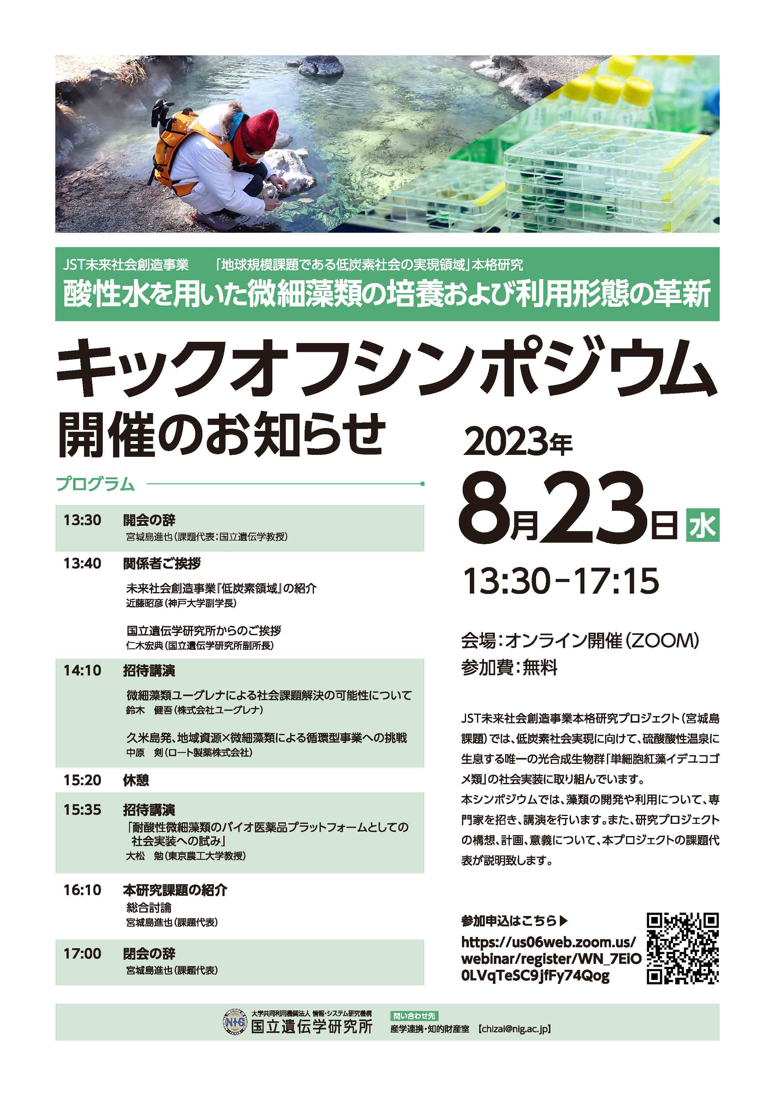 「地球規模課題である低炭素社会の実現領域」 酸性水を用いた微細藻類の培養および利用形態の革新 キックオフシンポジウム開催