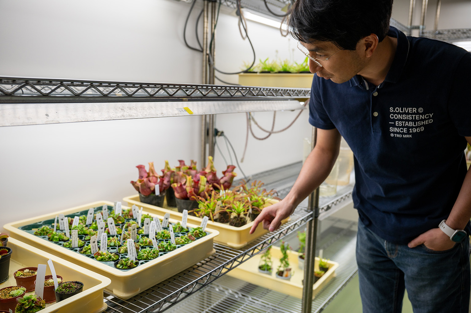 系統の異なる生物に同じ性質が進化してくる現象を収斂(しゅうれん)進化という。食虫植物に魅せられ、その収斂進化の謎をゲノム配列のバイオインフォマティクス解析から明らかにしてきた福島准教授。ゲノム配列には、さまざまな生物の何億年もの進化の様子が刻まれているという。