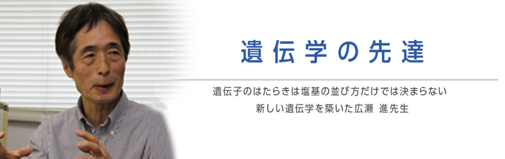 広瀬進先生は、遺伝学と分子生物学からのアプローチにより、細胞にあるクロマチンの構造の変化による遺伝子の発現の調節機構を明らかにし、 エピジェネティクスという遺伝学の新しい分野を築いた研究者の一人です。遺伝研には、1986年から定年をむかえる2007年まで在籍し、副所長も務めました。 現在は、名誉教授として精力的に研究を続けています。広瀬先生に遺伝研での研究生活を振り返ってもらいました。