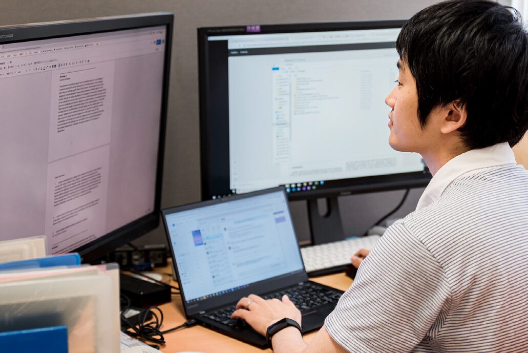 現在は、ピロリ菌のゲノムリアレンジメント、ビフィズス菌の糖関連酵素、メタボローム解析のデコンボリューション技術、質量イメージング用画像処理、生薬のメタボロームなど、多岐にわたるプロジェクトを同時並行で進めています。私の頭のなかでは、それぞれを区別することはなく、自然に共存している感じです。もちろん私一人では不可能で、いずれもウェットな実験をする研究者に協力いただいていますし、研究室の学生には一人ひとり異なるテーマに取り組んでもらいます。学生には、自分の興味に従って積極的に参画してもらっています。
