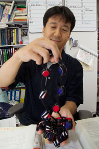 ヒトの体は約60兆個の細胞から出来ており、その一つ一つの細胞の大きさは、その種類にもよるが、およそ20ミクロン(0.02ミリメートル)程度である。だが、その細胞の中には、長さ約2メートルのDNAが収納されている。細胞が分裂する際、DNAはコンパクトに凝集し、染色体というものになる。長いDNAが細胞の中にどのように収納されているか、それを明らかにするのが前島教授の研究テーマだ。