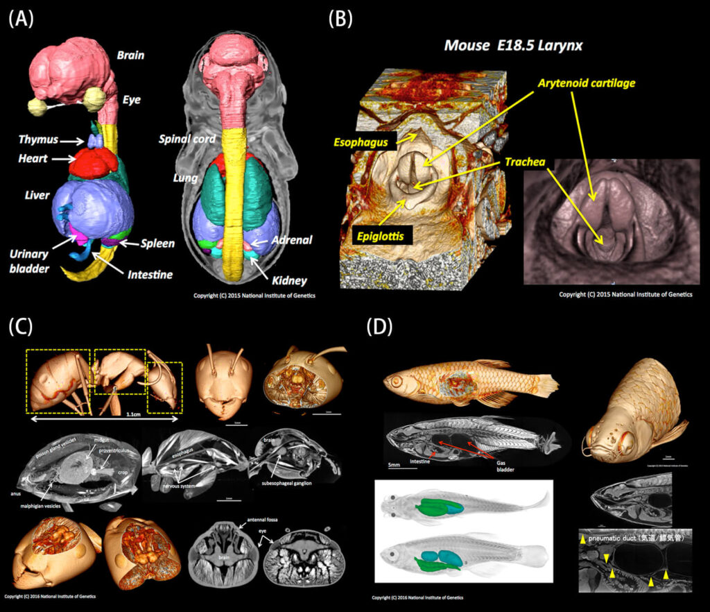 国立遺伝学研究所哺乳動物遺伝研究室の城石俊彦教授と前野哲輝技術専門職員らのグループは、CTスキャンにより様々な小型生物の複雑な構造を立体的に観察する技術を確立しました。