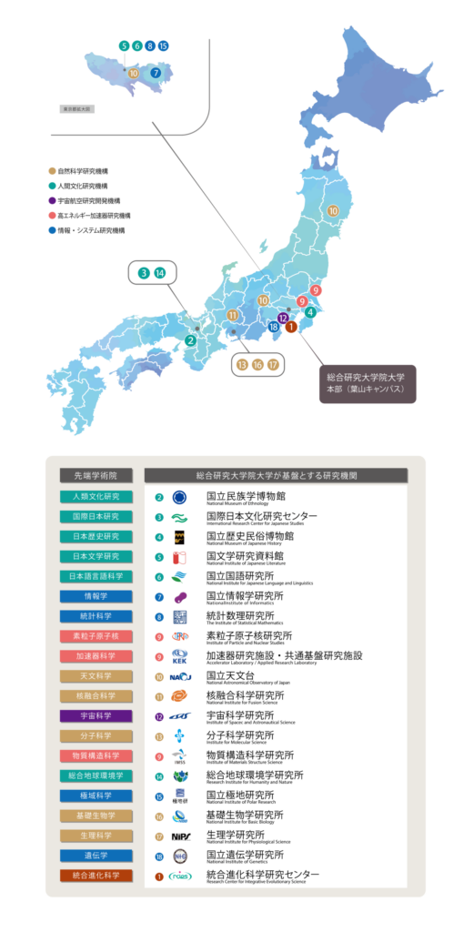 総合研究大学院大学は、大学共同利用機関等との緊密な連係及び協力の下に、世界最高水準の国際的な大学院大学として学術の理論及び応用を教育研究して、文化の創造と発展に貢献することを理念に、1988年に我が国最初の国立の独立大学院大学として創設されました。