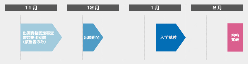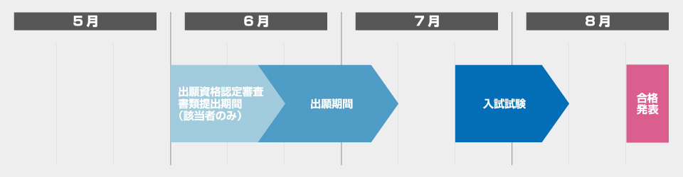 - 出願資格認定審査の書類提出締切は、通常の出願期間より早く設定されていますので、該当者は注意してください。